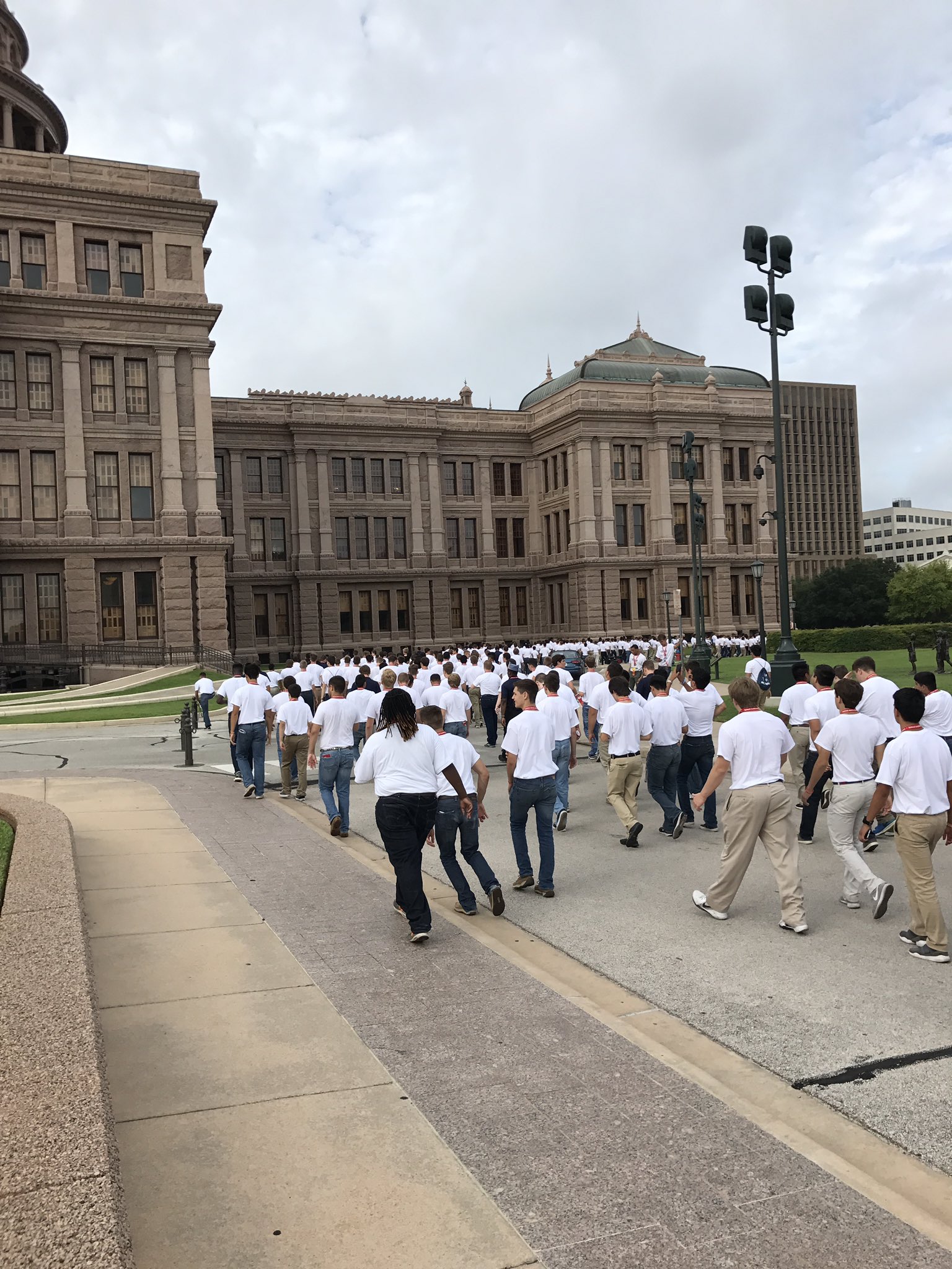 Today the Statesmen of Texas Boys State marched to capital to visit the various offices of elected officials and to tour the facility. The day began with the Statesmen lining up to march together with the band in the lead playing different music pieces. The capitol building of Texas is an amazing feat of architecture. Many people were able to see the march and many were impressed by the uniformity of the Statesmen. The House and Senate members reported to their respective chambers and began debating and passing laws. One bill in particular was highly favored by both chambers, the bill for secession. The senators and representatives of the Texas Boys State government passed the bill and created a constitution and a declaration of independence. This is the first time in Texas Boys State history that the government body decided to secede from the United States.